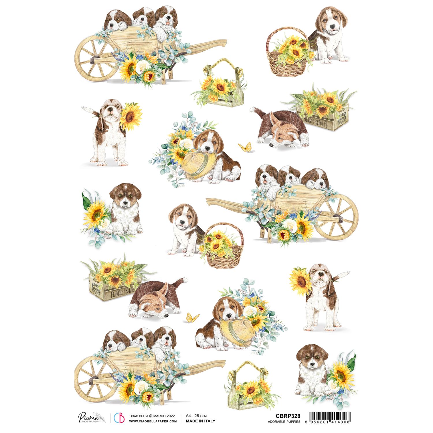 Adorable Puppies - Ciao Bella Piuma Rice Paper A4 - 5 Pack