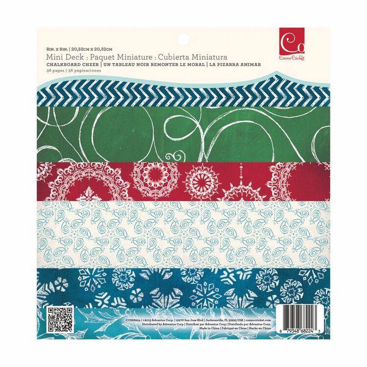 This 8 x 8 inch Chalkboard Cheer paper pad by Cosmo Cricket contains 36 pages of 18 designs (2 of each) with a touch of festive spirit to them. Perfect for Christmas crafting.