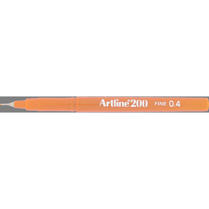Artline EK200 Orange 0.4 pen. The Artline 200 fine pen is a high quality popular fineline pen with a 0.4mm needle point tip. Its ink is Xylene free, water based, instant drying and smear resistant. Available with a choice of 12 ink colours Artline 200 fine 0.4 pens are Ideal for all general purpose writing at the office, in school or at home.