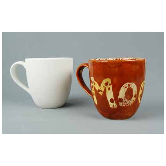 Bisque assorted size large coffee house mug or cup in earthenware ceramic.