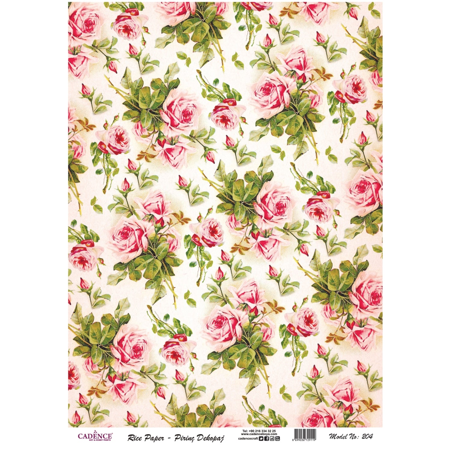 Cadence Rice Decoupage Paper - Roses In Bloom