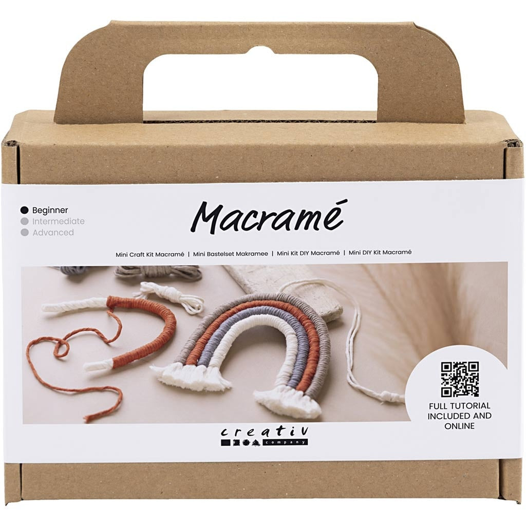 Contents: Macrame cord, thread, needle. Make a macrame rainbow using this kit. Contains all the materials and instructions you need. If you want to learn how to make your own macrame rainbow, this Mini Craft Kit is perfect for you. Everything you need is included in the kit. Wrap the macrame string around the rope and finish with a macrame Gathering Knot. Finally, sew the arches together using needle and thread. The result is a beautiful rainbow that can be used to decorate your home. Find the instructions on the back of the box – or scan the QR code and follow it online. Hang up your finished rainbow:. On the living room wall Above your child’s bed In the best window of your house . including instructions