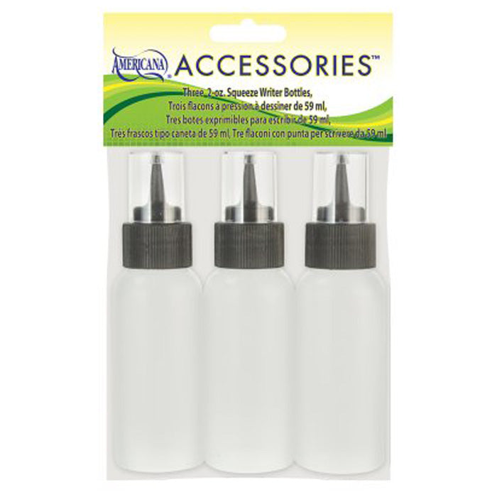 Reusable plastic squeeze writer bottles allow for easy controlled applications and are ideal for adding fine details.