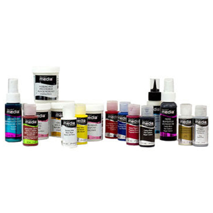 This introductory DecoArt Media kit will let you sample the wide range of products available in the line. We offer free educational videos by renowned mixed media artist Andy Skinner that thoroughly explain all the products in the line and offer you techniques for using them together.