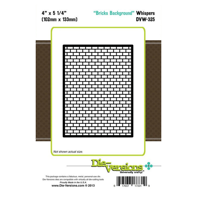 Die-Versions - Whispers - Bricks Background. 4" x 5 1/4" Die-Versions are thin, chemically-etched metal dies, used to cut out letters and shapes from a variety of materials. They are designed to cut cardstock, vinyl, vellum, foam, thin chipboard, cork, metallic paper, felt and more. Each die comes with a piece of ejection foam.