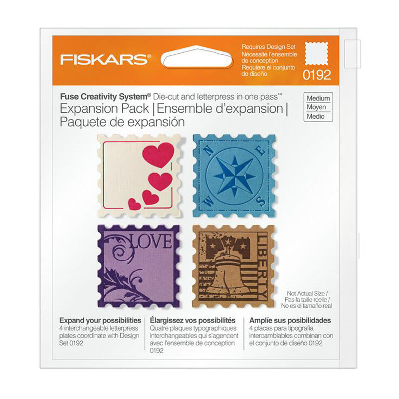 Fuse - Medium Design Plate Expansion Pack - Stamp (4 pk). Expansion Packs include four letterpress plates that fit corresponding medium dies to expand creative possibilities. Adding a range of letterpress plates is a great way to expand your creative possibilities. Coordinating ID numbers on the Design Sets and Expansion Packs make them easy to match.
