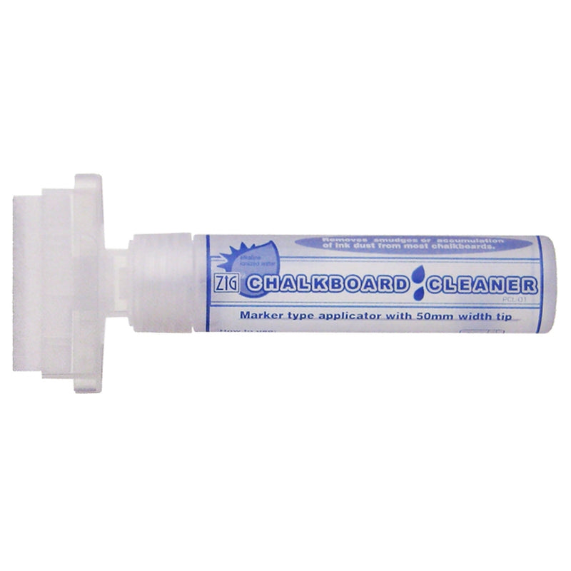 ZIG POSTERMAN CLEANER. ZIG Posterman Cleaner is used for easy removal of ZIG Posterman Waterproof, Posterman Wet-wipe and Illumigraph markers from a non-porous surface. Cleans chalkboards and whiteboards without damage. Water-based liquid cleaner for chalkboard. Cleans the surface of the board without damage. TIP SIZE:50 mm. INK TYPE: Alkaline ionized water, Surfactant, Odourless.