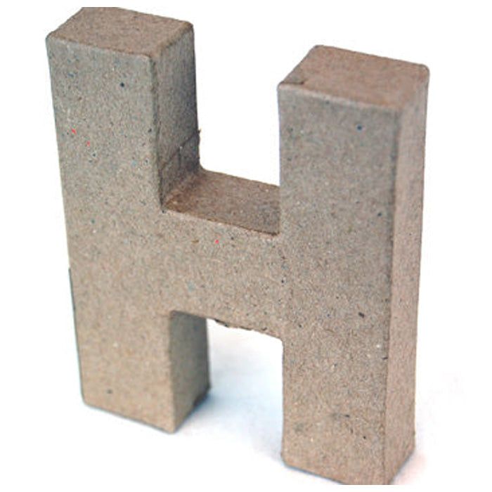 Papier Mache Letter H Our own-brand range of biodegradable low-cost papier mache shapes (made from recycled waste products e.g. old newspapers cardboard etc) have been hand-made using 100% recycled materials and organic glue. The designs are supplied in a buff or manila colour ready to paint or decorate with acrylics inks poster paints stamps polymer clay foam clay decoupage (or Decopatch) papers napkins glitters embelishments beads fabric and much more. Dimensions: 10cm - 4 Sold in PACKS OF 5 We also supply 20.5cm medium letters under product code CLP2001 to CLP2026 in packs of 3 and have had them made as 3D boxes in packs of 3 under product codes CLP2301 to CL2326.