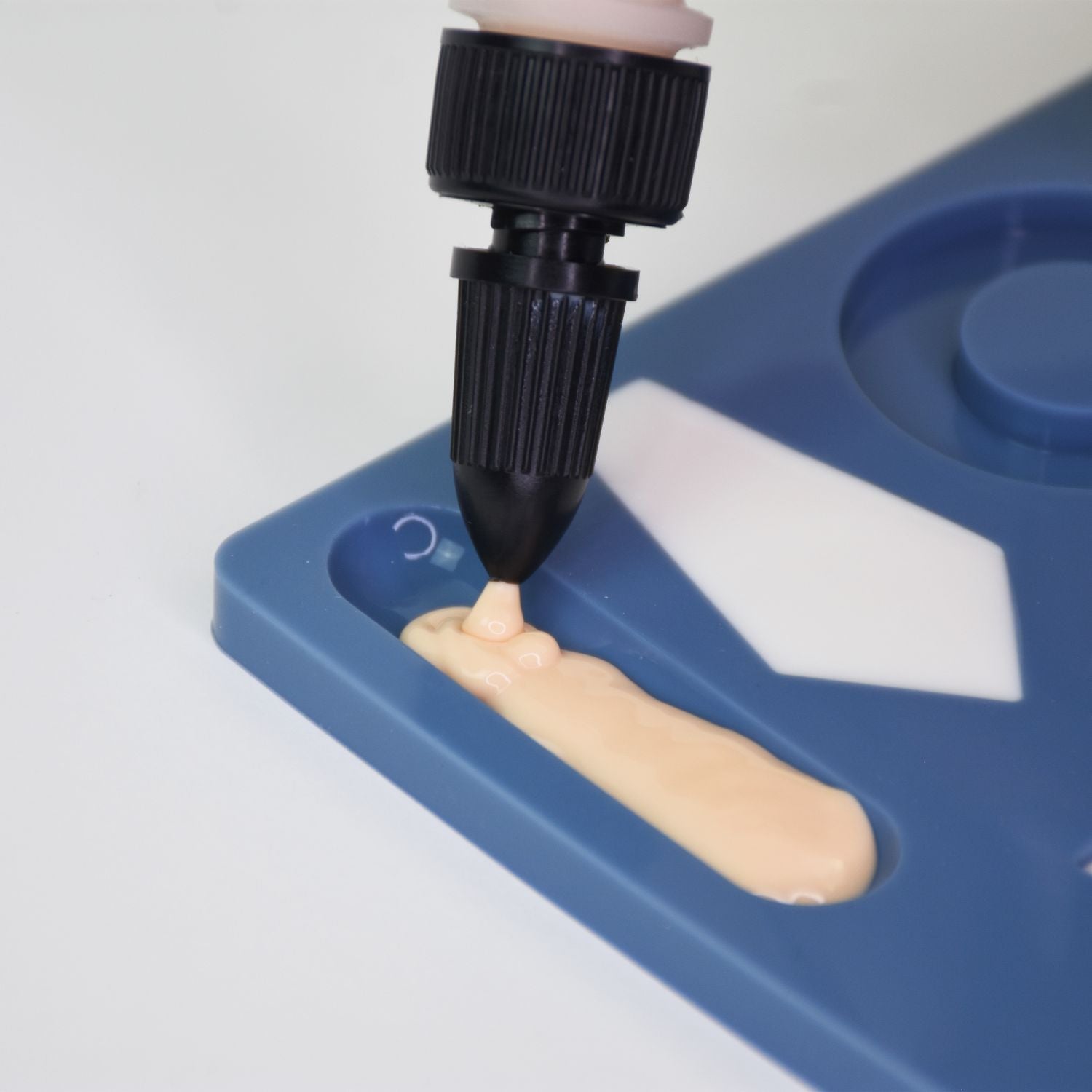 Twist cap for precise flow control open completely to fill mold. Open half way for other detail work.