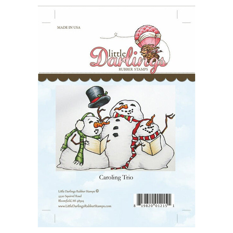 LDRS Little Darlings, , Caroling Trio. Measures 4.542" X 3.25". Little Darlings stamps are deep etch rubber stamps made with natural gum rubber. This stamp is unmounted, but works easily with Tack N Peel (sold separately).