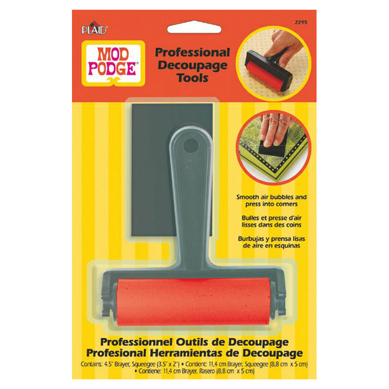 Mod Podge Professional Tool Set. This Mod Podge Professional Tool Set is essential for any decoupage crafter. The Brayer is used to smooth paper, fabric and other items onto a surface, providing the right amount of pressure to eliminate air bubbles and with no mess. The Squeegee is used to press paper, fabric and other items into hard-to-reach corners.