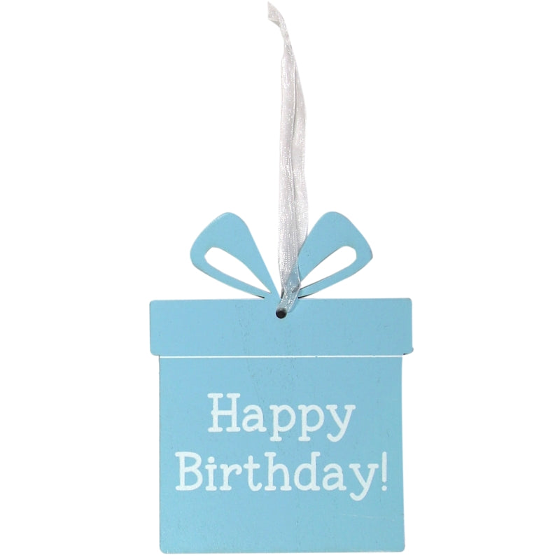 Wooden Present Pastel Blue 9cm x 11cm Happy Birthday 1pc
