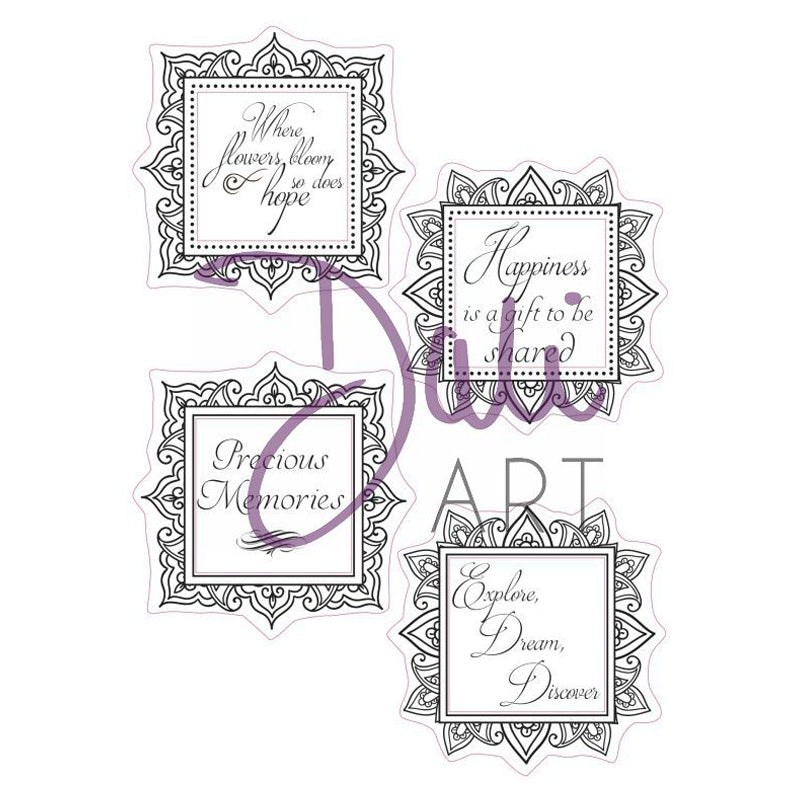 DaliART Square Frame Sentiments Stamp inspired by henna designs.