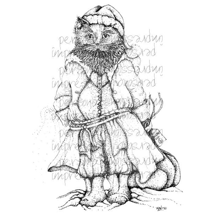 KC Christmas Eve Santa A7. Clear Polymer A7 size Stamps easy to align for precision stamping. Sticky back for direct mounting onto acrylic blocks. Can be used stored and reapplied many times. Designed By Kate Collins