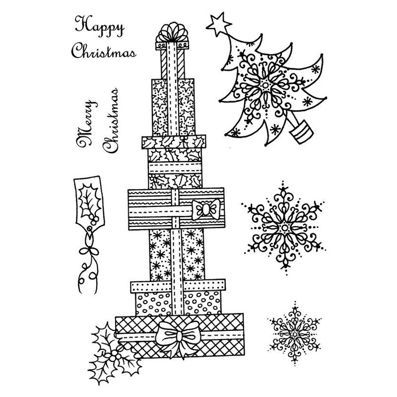 SD Huge Stack of Christmas Presents. Designed by Sue Dix. Easy to align for precision stamping. Sticky back for direct mounting onto acrylic blocks. Can be used stored and reapplied many times. Size A6.