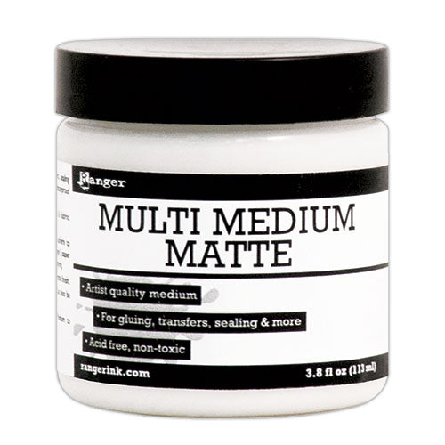 Matte 4 oz Multi Medium. Rangers Multi-Medium is an artist quality acrylic gel medium that can be used as a super strong adhesive, acrylic paint extender or sealer. Use it in many mixed-media techniques including image transfers or resist. Multi Medium is non-yellowing and dries clear. Available in 3 sizes - .5 oz. bottle with needle tip applicator, 1 oz. jars with a convenient built-in brush and 4 oz. jars for larger projects. All sizes are available in Matte and Gloss finishes. Acid-Free, Non-Toxic & Archival. Non-yellowing, dries clear.