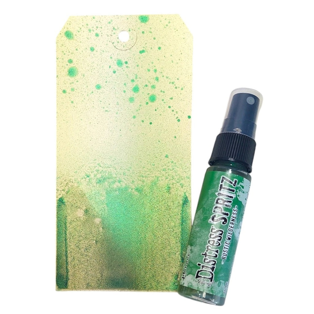 Tim Holtz Distress® Spritz- Rustic Wilderness Tim Holtz Distress® Spritz is a luminous spray that coordinates with the Distress color palette to add colorful shimmer to your favorite Distress products. Distress Spritz are formulated blends of pearlized pigments in a clear fluid base to use on porous surfaces like paper, canvas, wood and more. Use with Distress Ink, Oxide, Spray Stain, Oxide Spray, Paint, Pencils and Pastes to create colorful, luminous effects and backgrounds. Available in 1 fl oz bottle (29ml)