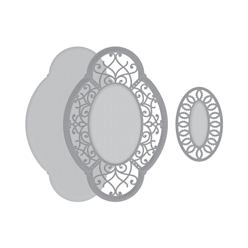Shapeabilities Hannah Elise Layering Frame Small Etched Dies Chantilly Paper Lace Collection by Becca Feeken is a set of three dies includes an outer layer, a filigree design layer and a detailed inner frame layer. Nest them together for a stunning piece or use separately for another design option.