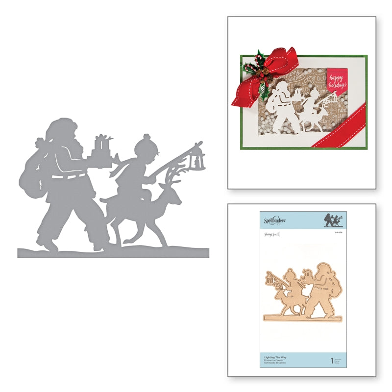 Shapeabilities Lighting the Way Etched Dies A Sweet Christmas by Sharyn Sowell shares a silhouette of a kind little boy lighting the way for Santa to deliver presents. Spellbinders Shapeabilities cut, deboss, emboss and stencil with a single etched die template.