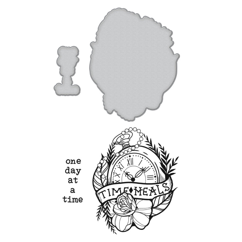 One Day At A Time Stamp and Die Set Inked Messages Collection by Stephanie Low brings both worlds together of die templates and coordinating stamps to give these images life! These cling foam (EVA) rubber stamps are designed to be used with an acrylic block. This set includes two etched dies with two stamps.