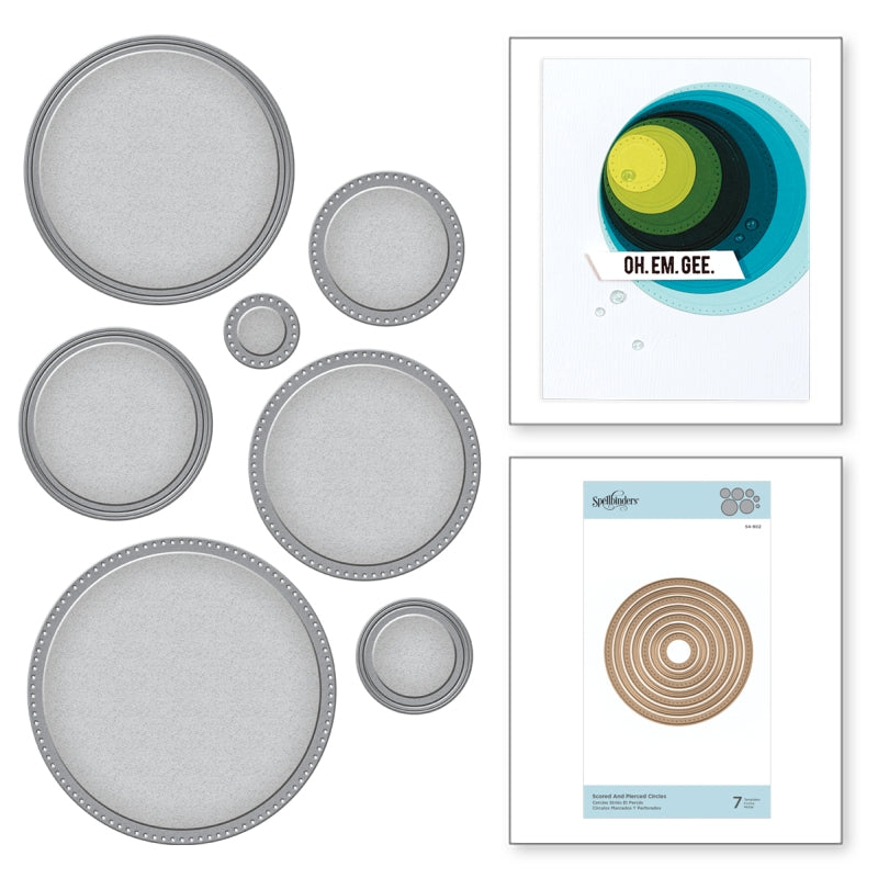 Nestabilities Scored and Pierced Circles Etched Dies is a set of seven dies. This set is a combination of scored outline edge circles and pierced edge circles. Eliminates the need to hand piece and gives you multiple scored lines in one set!