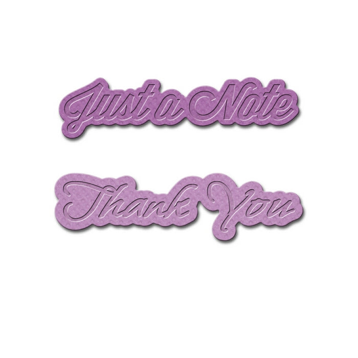Express yourself with these words of gratitude for cards, scrapbook pages and other projects. Set of two words, Just a Note and Thank You, has great debossing details. Ink the inside of die template and letterpress to make them pop!