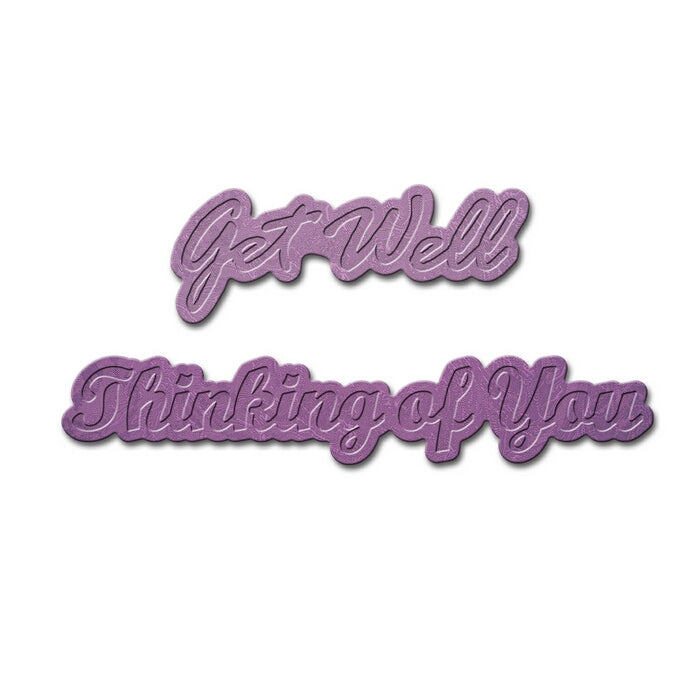 Great set of sentiments to have on hand for those who need to know you are thinking of them. Set of two words, Get Well and Thinking of You, has great details. Just ink the inside of die template to letterpress and highlight your sentiments.