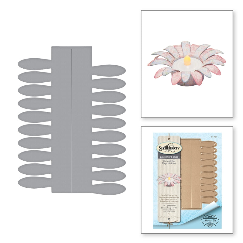 Shapeabilities Tea Light Flower Etched Dies Thoughtful Expressions by Marisa Job is a set of one die. Simply fold in half at the score line and wrap around the tea light. The petals are off set at fold to give you a fuller look. Just that simple!