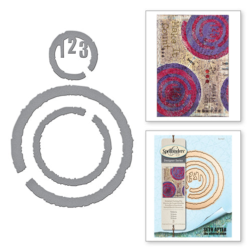 A set of three etched dies all in a circular shape. The smallest circle has the numbers 1-2-3 on the inside edge makes for a bold accent in any project such as art journal, contemporary card or a one of kind creation.