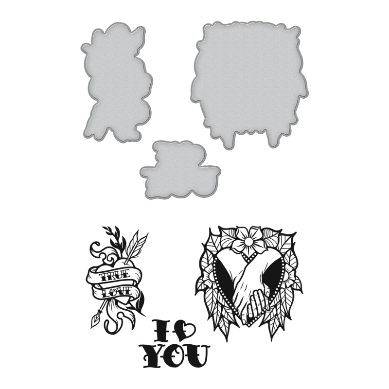 True Love Stamp and Die Set Inked Messages Collection by Stephanie Low brings both worlds together of die templates and coordinating stamps to give these images life! These cling foam (EVA) rubber stamps are designed to be used with an acrylic block. This set includes three etched dies with three stamps.