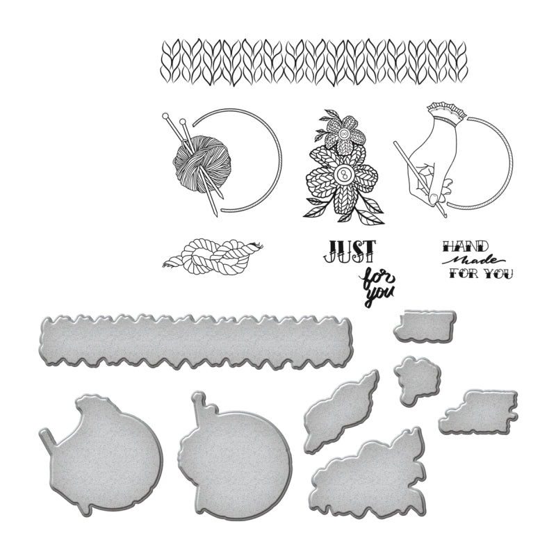 Yarn Handmade by Stephanie Low Stamp and Die Set brings both worlds together of die templates and coordinating stamps to give these images life! These cling foam (EVA) rubber stamps are designed to be used with acrylic blocks. This set includes eight stamps with eight coordinating etched dies.