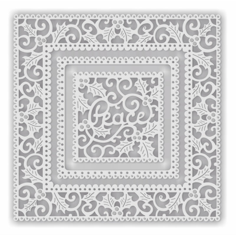 Sue Dix Holly And Swirls Peace Frame Set Sweet Dixie Cutting Die