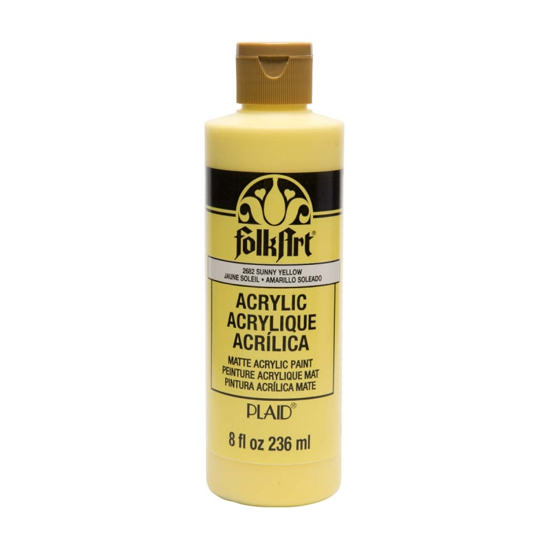 FolkArt Acrylic Paint is a premium, artist-quality acrylic paint, perfect for all your DIY decorative craft paint and home decor projects. Its rich, thick, creamy texture ensures smooth brushability for exceptional blending, highlighting and shading, and unmatched versatility for strokework, stenciling and other design techniques on a wide variety of porous surfaces, such as wood, canvas, tin, terracotta, fabric, and paper mache. With a beautiful matte finish, FolkArt Acrylic Paint is acid-neutral, water-based, and non-toxic. Clean up is easy with FolkArt acrylic paint! Simply clean up while wet with soap and water