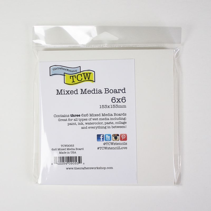 Contains THREE 6x6 Mixed Media Boards." Great for all types of wet media including: paint, ink, watercolour, paste, collage and everything in between!