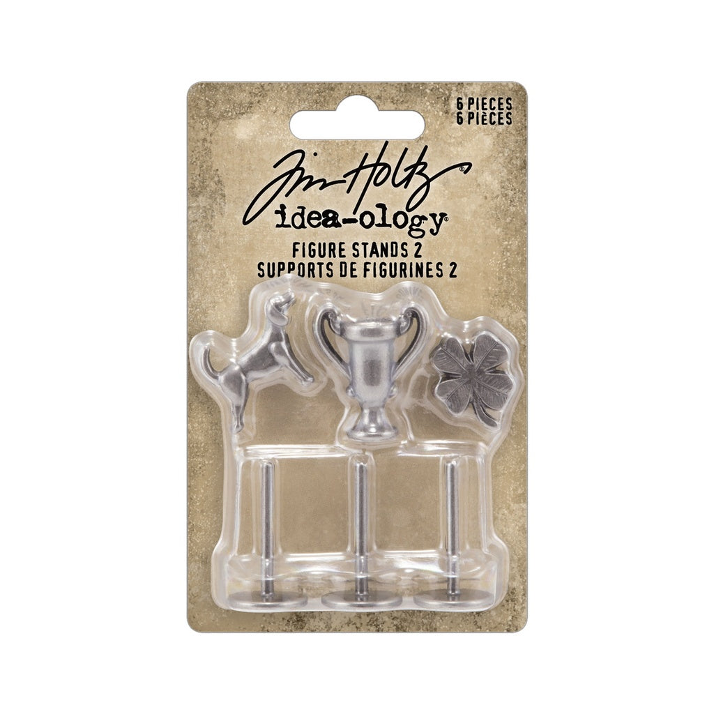 Showcase your creativity with the Tim Holtz Figure Stands 2. This vintage-inspired collection of charms is perfect for adding a touch of nostalgia to your projects. If you're looking for a decorative accent to your mixed media, each of the 3 crafted charms includes a stand that is sure to delight. Whether you're a mixed media artist, crafter, or DIY enthusiast, this collection is sure to inspire your next creation. Stands range in inches from 1-3/8" to 1-1/5" in height. Add a touch of vintage charm to your make with the dog, trophy cup, or 4-leaf clover. Constructed of metal. 3 charms (1 dog, 1 trophy cup, 1 4-leaf clover) MPN:.