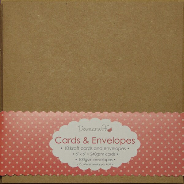 Dovecraft Kraft 6"x6" Cards & Envelopes , with kraft envelope. 10 Kraft 6"x6" cards & envelopes