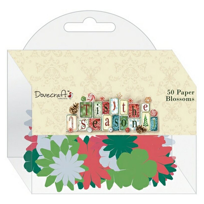 Paper Blossoms. 30 plain coloured and 20 printed paper blossoms styled to coordinate with the complete "Tis the season craft collection.