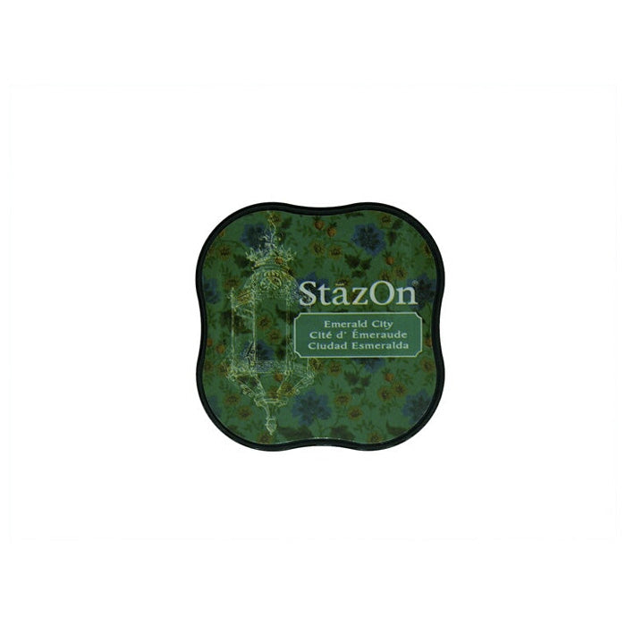 Emerald City Stazon Midi Ink Pad. Application: Plastic, metal, shrink plastic, rubber, leather, polymer clay, laminated paper, coated paper, uncoated paper, photo, glass, porcelain, terracotta, cellophane. Solvent Ink,