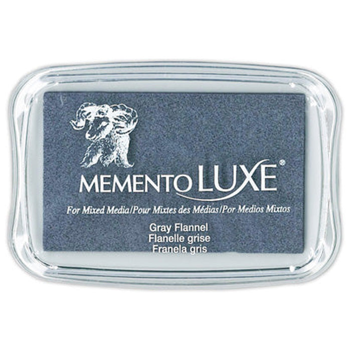 Gray Flannel Memento Luxe Ink Pad. Mixed media ink for use on any porous surface; permanent on fabric when heat set
