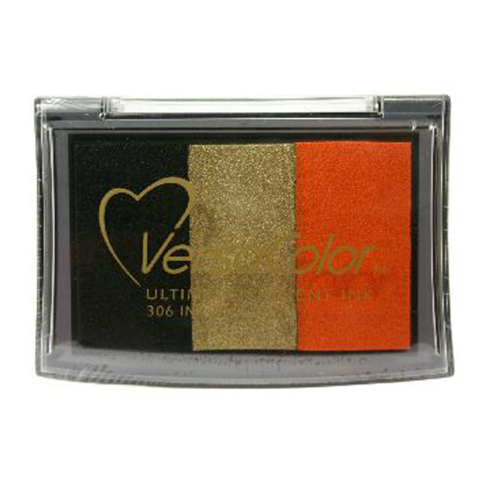 Indian Corn Versacolor 3 Colour Pigment Ink Pad for Stamps (Black Gold Orange). Versacolor uses the highest quality raw materials including a superior ink recipe a stackable container with an ultra-dense foam pad for crisper stamped images. VC3- To aid your keyword search this product has been categorised as Christmas and Wedding
