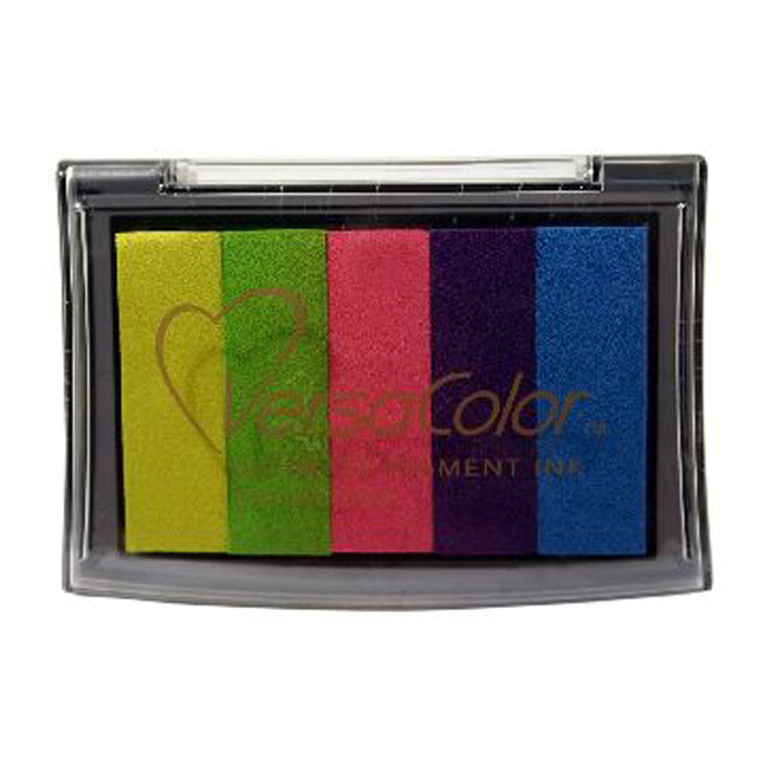 Lollipop Versacolor 5 Colour Pigment Ink Pad for Stamps (Citron Lime Pink Violet Cyan). Versacolor uses the highest quality raw materials a stackable container with an ultra-dense foam pad for crisper stamped images. VC5- To aid your keyword search this product has been categorised as Christmas and Wedding