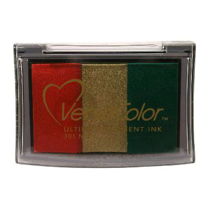 Noel Versacolor 3 Colour Pigment Ink Pad for Stamps (Scarlet Gold Green). Versacolor combines the highest quality raw materials including a superior ink recipe a stackable container with an ultra-dense foam pad for crisper stamped images. VC3- To aid your keyword search this product has been categorised as Christmas and Wedding