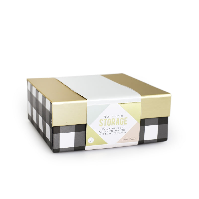 Stylishly store photos, embellishments and other small items in the Small Magnetic Box from Crate Paper! The package includes one box with a magnetic flap-closure lid from the Desktop Storage Collection.