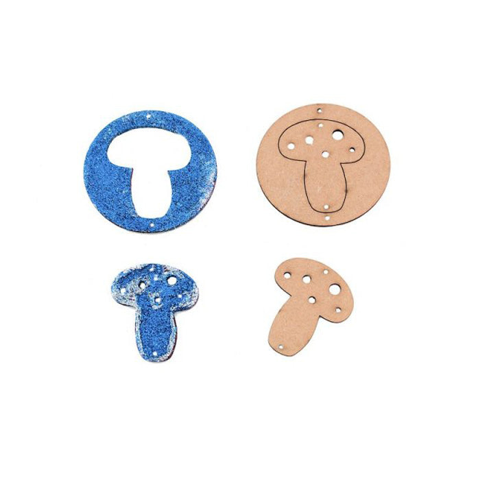 Wood/MDF 3mmToadstool Duo Decorations design hanging ornament with pre-drilled hanging holes.